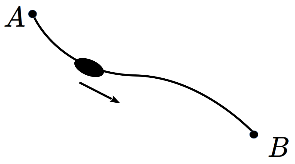 To compare 18th century and modern techniques we will consider Johann Bernoulli’s (1667–1748) solution of the Brachistochrone Problem. In 1696, Bernoulli posed and solved, the Brachistochrone problem: To find the shape of a frictionless wire joining points \(A\) and \(B\) so that the time it takes for a bead to slide down under the force of gravity is as small as possible.