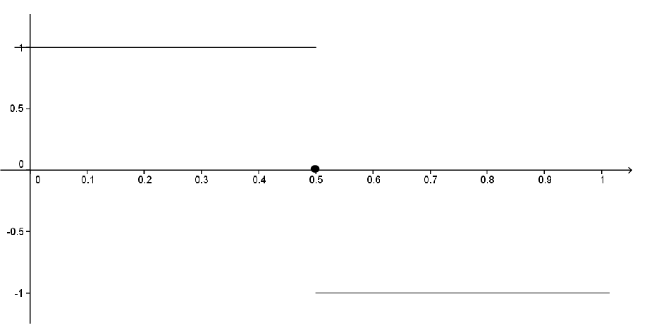 f_n(x)= \begin{cases}n\amp \text{ if } x\in\left(0,\frac{1}{n}\right)\\ 0\amp \text{ otherwise } \end{cases} \text{.}